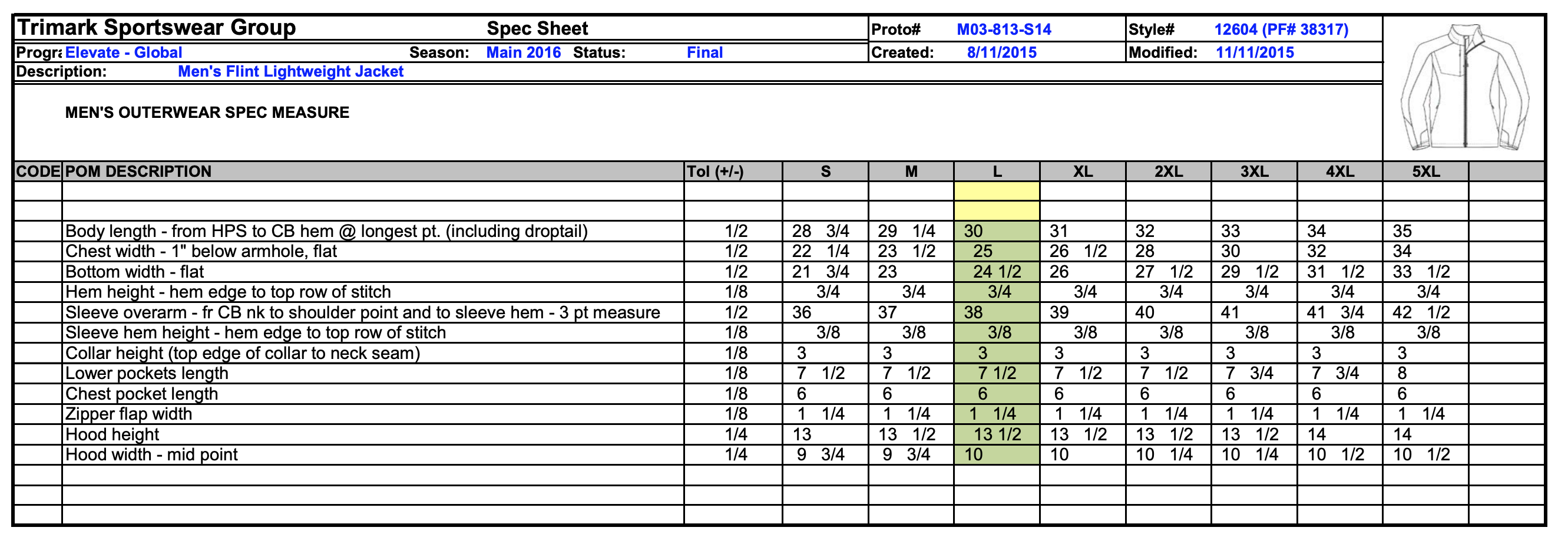 | Body length | 28 3/4 | 29 1/4 | 30 | 31 | 32 | 33 | 34 | 35 |