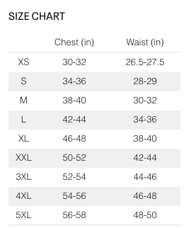 Chest 34"-36" 38"-40" 42"-44" 46"-48" 50"-52" 52"-54" 30"-32"