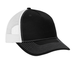 Our popular trucker cap, now with five panels for ample decoration space. Fabric 100% cotton twill front panels and bill (Solids), 100% poly mesh back panels; 65/35 polyester/cotton twill front panels and bill (Heather Grey) Structure Structured Profile Mid Closure 7-position adjustable snapback Please note: The previous style number for this cap was the C115. The materials, fit, colors and quality are unchanged.