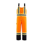 215 gsm – 6.3 oz./yd2 – 10.5 oz./lin. yd 100% polyester oxford 3000 mm waterproof rating, 3000 gsm breathability rating, wind resistant and water repellent finish. Insulation: 200 gsm 100% polyester. Fully seam sealed. Adjustable elastic shoulder straps. Chest pockets with flap closure, lower front patch pockets, back patch pockets and tool pockets. Interior chest pocket. 2 way YKK zippers at front fly and side seams. Elastic at back waist. Extendable hem panel to increase inseam 3”. 4” hi-vis contrast band with 2” reflective tape on front and back body and legs. Meets CSA standards.