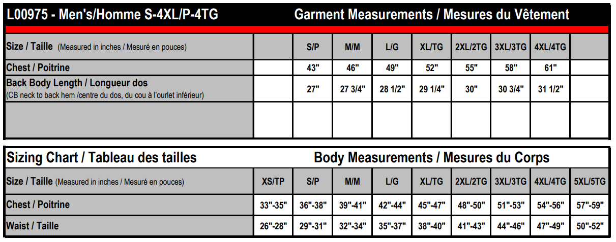 65 gsm – 1.9 oz./yd2 – 3.5 oz./lin. yd 100% polyester taffeta, wind and water resistant finish. Insulation: 180 gsm 100% polyester. Zippered pockets, elastic binding on armhole and body hem. YKK zippers.