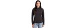 Crafted from a premium featherlight blend of 92% recycled polyester and 8% spandex, this women’s quarter zip delivers lightweight stretch, moisture wicking comfort, and a polished feel that moves easily through the day. The GRS Certified post-consumer recycled polyester fabric features a refined jacquard texture for elevated style, while raglan sleeves enhance mobility and natural range of motion. A quarter zip mock neck provides adjustable coverage for changing conditions, and built in UPF 50+ UV protection offers added confidence during outdoor moments—making this a versatile, performance driven layer designed for work, travel, and everyday movement.